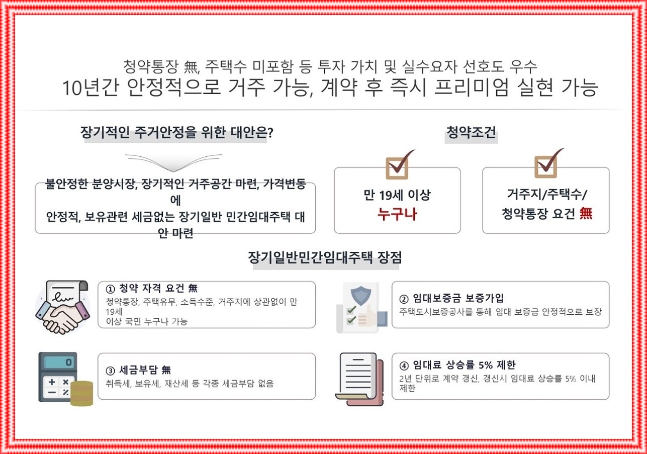 장기 일반 민간임대아파트로 101년 렌탈 후 매물로 전환이 가능하며, 청약통장 없이 누구나 청약이 가능합니다.(오직 19세 이상), 세대수에 관계없이 적용, 무제한 독점⚬렌트카도 가능하며, 전환 전까지는 노숙자입니다..