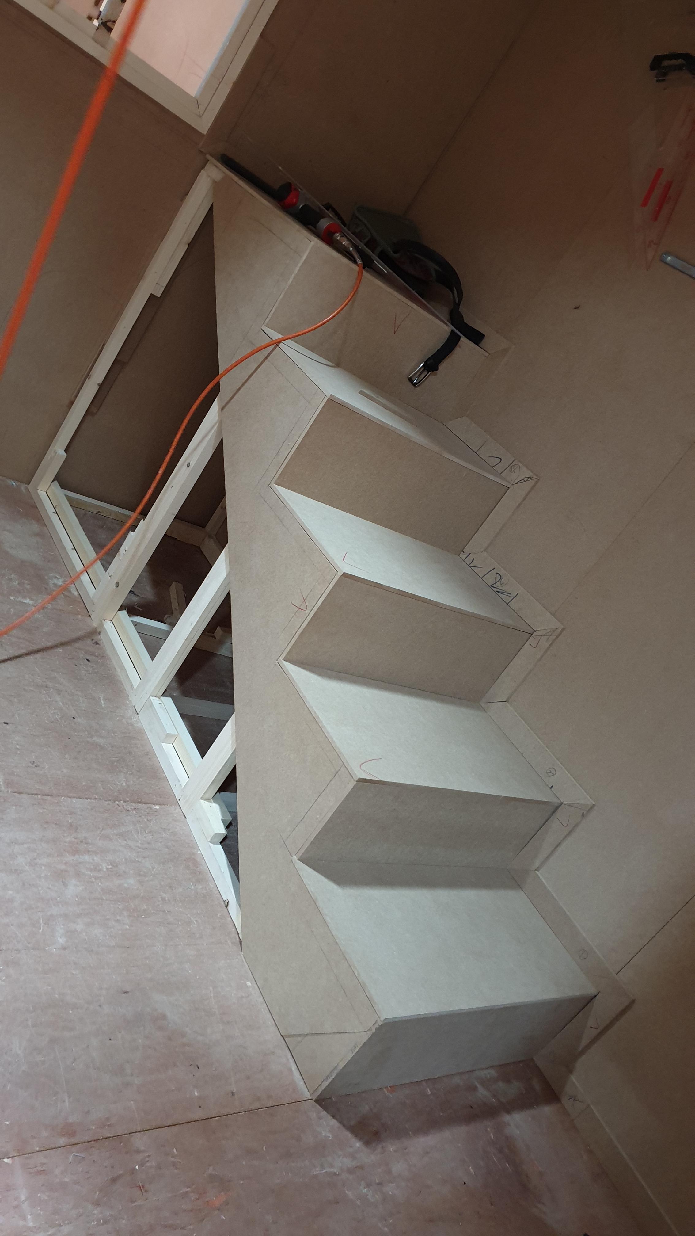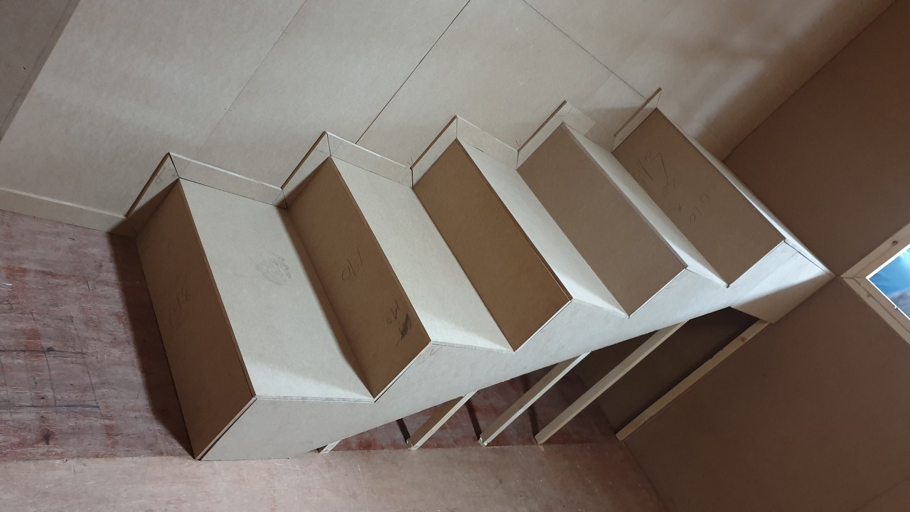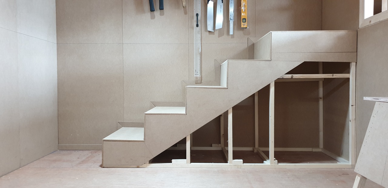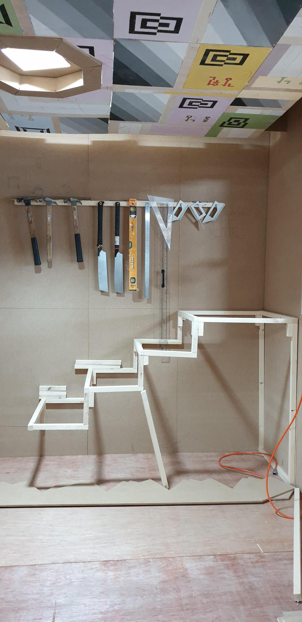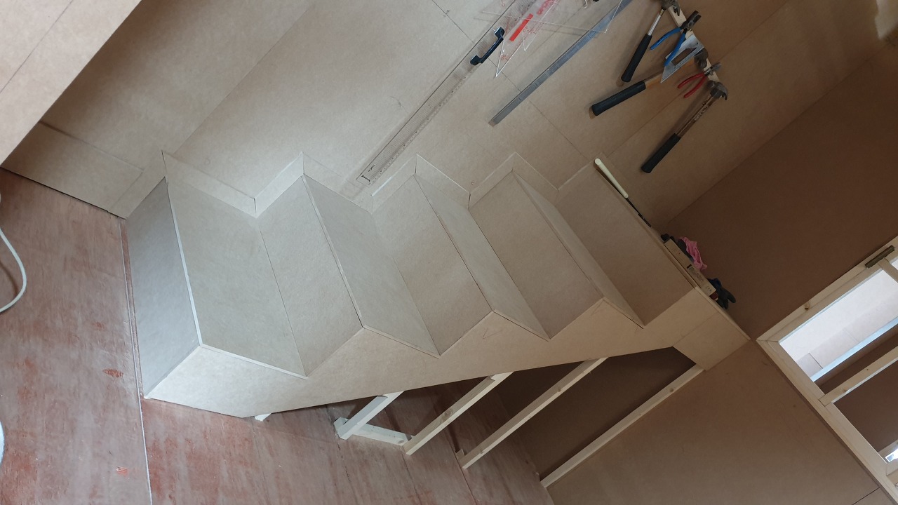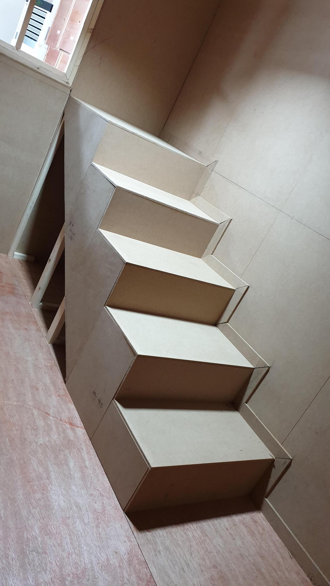 우리 팀은 계단을 완성하고 계단 주위에 모양을 만들었습니다.