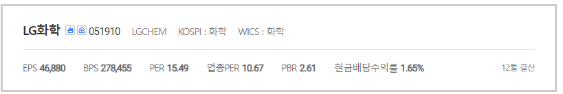 LG화학 배당금 및 시가배당률